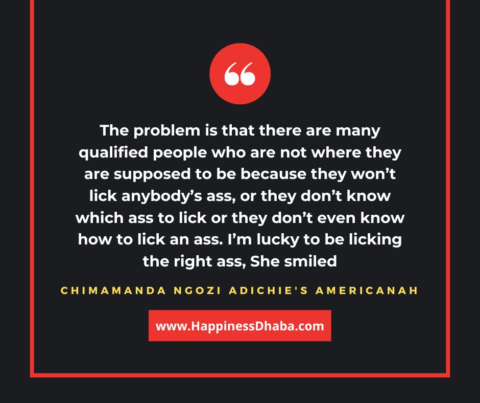 The problem is that there are many qualified people who are not where they are supposed to be because they won’t lick anybody’s ass, or they don’t know which ass to lick or they don’t even know how to lick an ass. I’m lucky to be licking the right ass.” She smiled